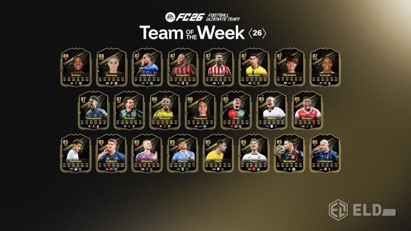 FC 26 TOTW 26 delivers a balanced lineup featuring a mix of top-tier attackers, creative midfielders, and reliable defenders. With Marie Katoto leading the squad at 89 OVR and several featured players receiving major boosts, there are plenty of new cards for Ultimate Team players to explore. The reduced presence of Premier League players also allowed stars from other leagues and competitions to shine in this week’s selection.